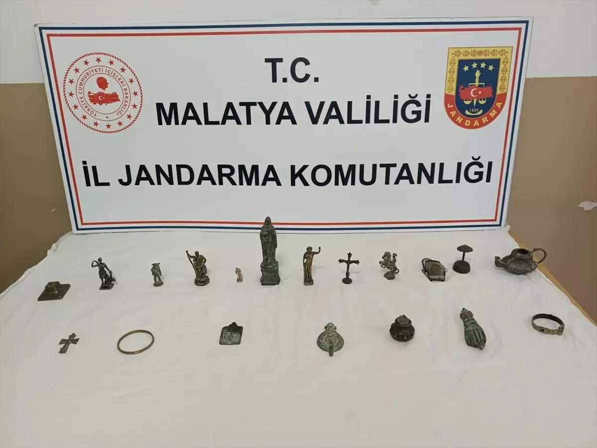 Malatya’da tarihi eser olduğu değerlendirilen 15 heykel, 2 bileklik, 1 biblo ve 1 küp ele geçirildi, bir şüpheli yakalandı.